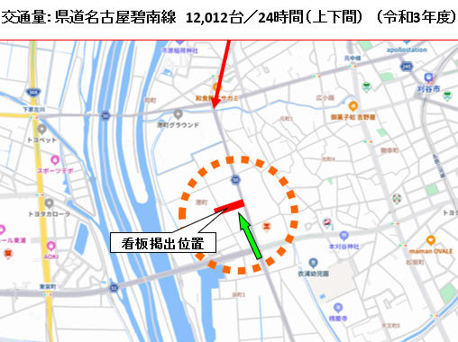 | 設置場所 | 刈谷市港町6丁目25-2 主要地方道名古屋碧南線沿い 南面 |