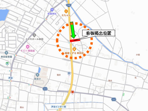 | ポイント | ★R248沿いで交通量の非常に多い場所です。又、遠目からでも良く見えますので、宣伝と誘導に大変効果が高いです。 ※新規枠になります。 |