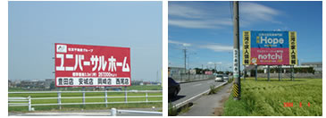 当社は、愛知県内の主要幹線道路沿いへの広告看板設置において、豊富な実績があります。 また、お客様のご要望に応えて、物件探しや用地交渉なども、長年の経験をもとにベテランの営業が対応しております。